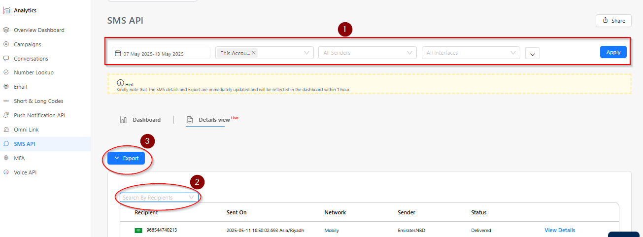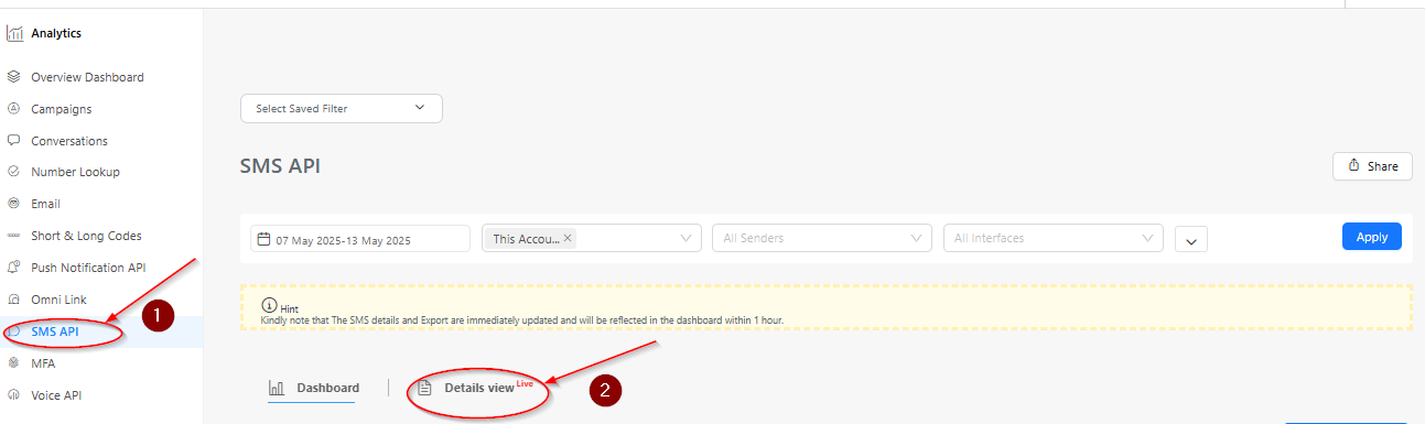 Date Range: Select a desired date range (e.g., 07 May 2025 – 13 May 2025).