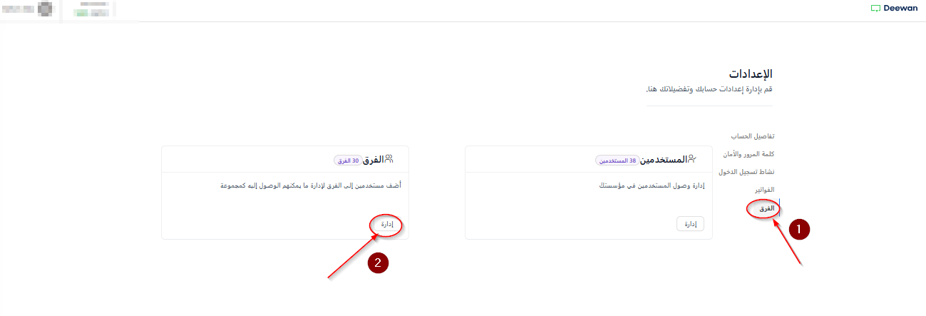 .3. اضغط على الفرق ثم انتقل إلى إدارة الفرق كما هو موضح في لقطة الشاشة أدناه.